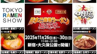 開催中 10月8日(水)~11月24日(月)★★★ 大久保公園食イベント新宿区 東京23区 秋の新作ラーメン祭(2025年10月8日~11月24日 新宿大久保公園) 日本中から116の名店が新作ラーメン祭で出店します。食べたことがないラーメンしかありません!開催概要開催期間:2025年10⽉8⽇(水)〜11月24⽇(月祝) 11:00~21:00会場:新宿・⼤久保公園 特設会場主催:ブルースモービル共催... 東京23区