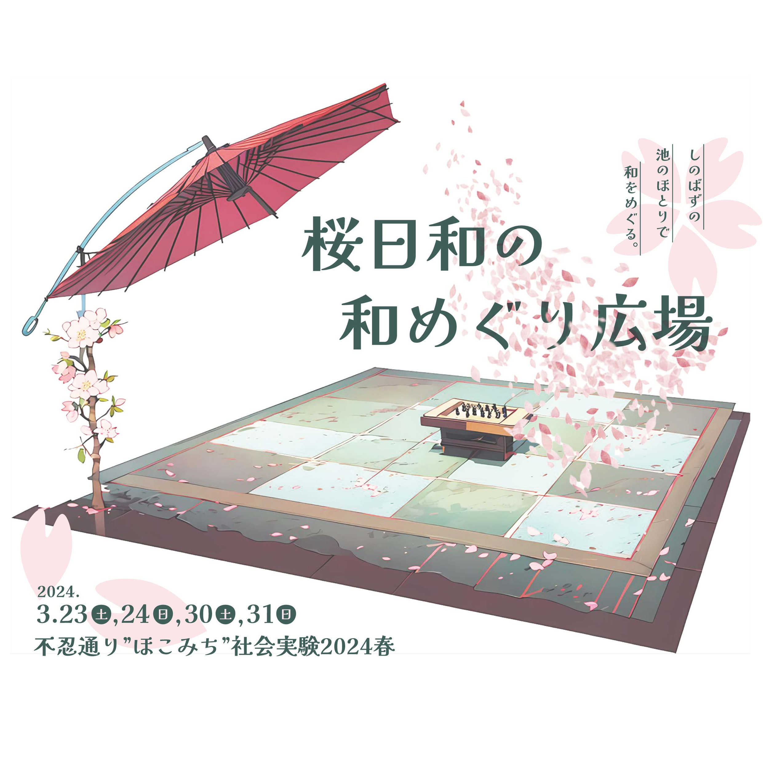 不忍通りの三角広場に、4日間限定で火鉢と畳のある小上がりスペースを設えます。しのばずの風物詩・桜を愛でつつ楽しむ、組紐・帯結び・書・投扇興などの和の体験。花見弁当・お味噌汁・お団子・お抹茶などの和の食事。少し敷居が高いお店や食事処、甘味処の皆様と連携・協力して、新しいストリートの楽しみ方を実験します。肩の力を抜いて心和む時間をお過ごしください。