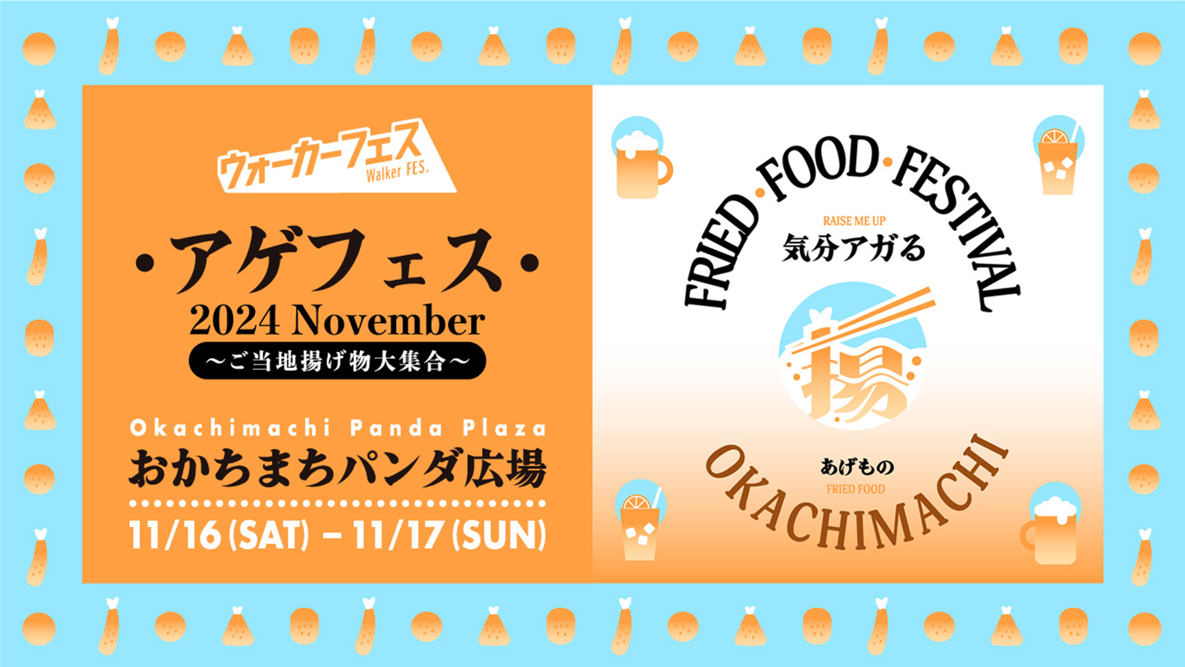 アゲフェスは、2024年11月16日(土)〜2024年11月17日(日)に「おかちまちパンダ広場」で開催されます。あげものと相性抜群なお酒が楽しめる「アゲフェス2024」にどうぞお越しください