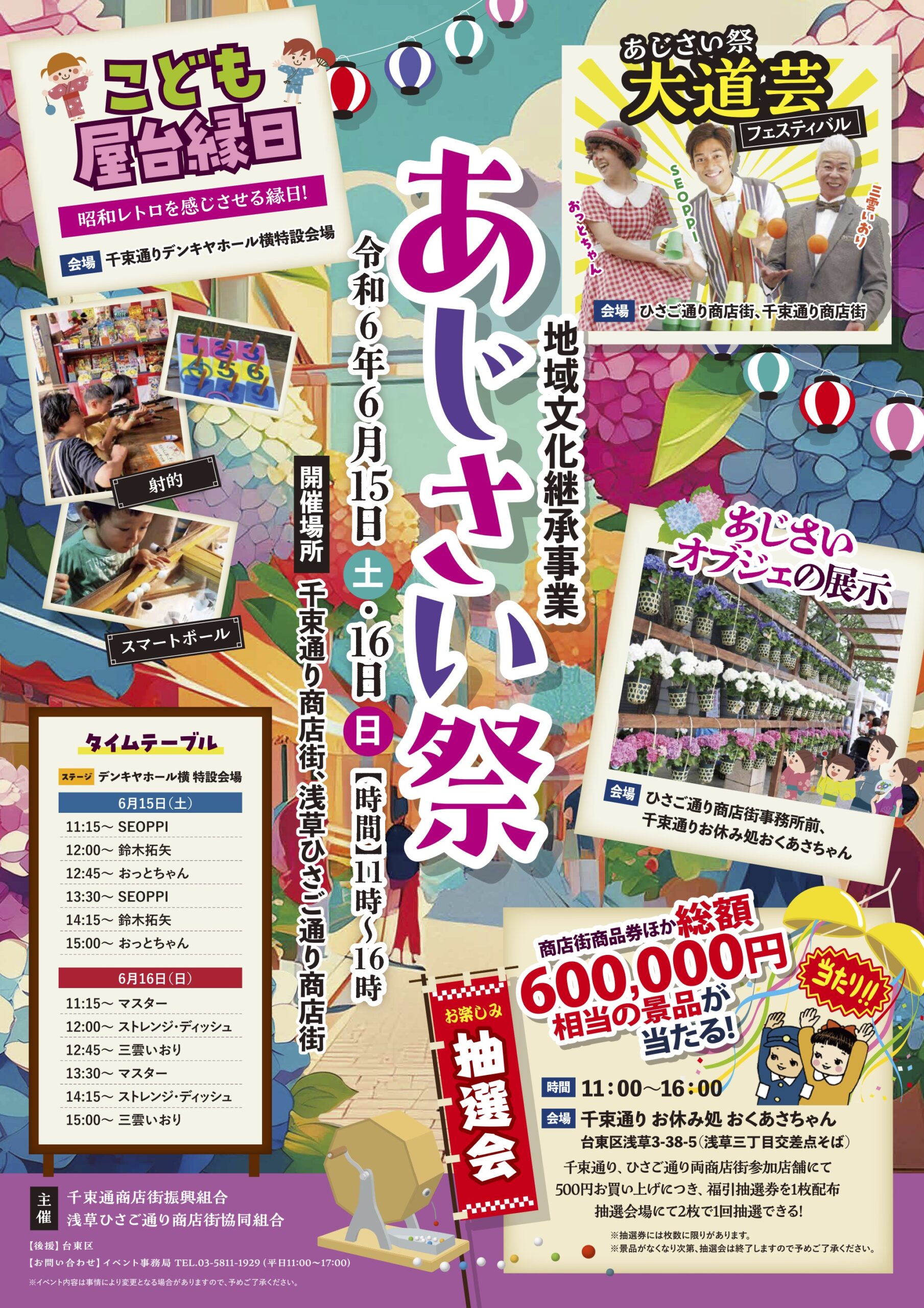千束通り商店街および浅草ひさご通り商店街では、地域文化を継承し、地域の魅力を発信するイベント「あじさい祭」を開催します。...