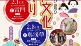 東京23区 台東区音楽・芸能 江戸の華まつり【吉原エリア】(2025年1月18日~19日 花園公園ほか) 2025/01/18~2025/01/19 東京23区 開催概要 開催日時:2025年1月18日(土)~19日(日) 11:00~16:00 開催場所:18日 花園公園・HOTEL座ミカサ、19日 長國寺 主催:吉原商店街 アクセス 【花園公園】台東区千束3-20-7 地下鉄日比谷線「三ノ輪駅」徒歩10分 【長國寺】台東区千束3-19-6