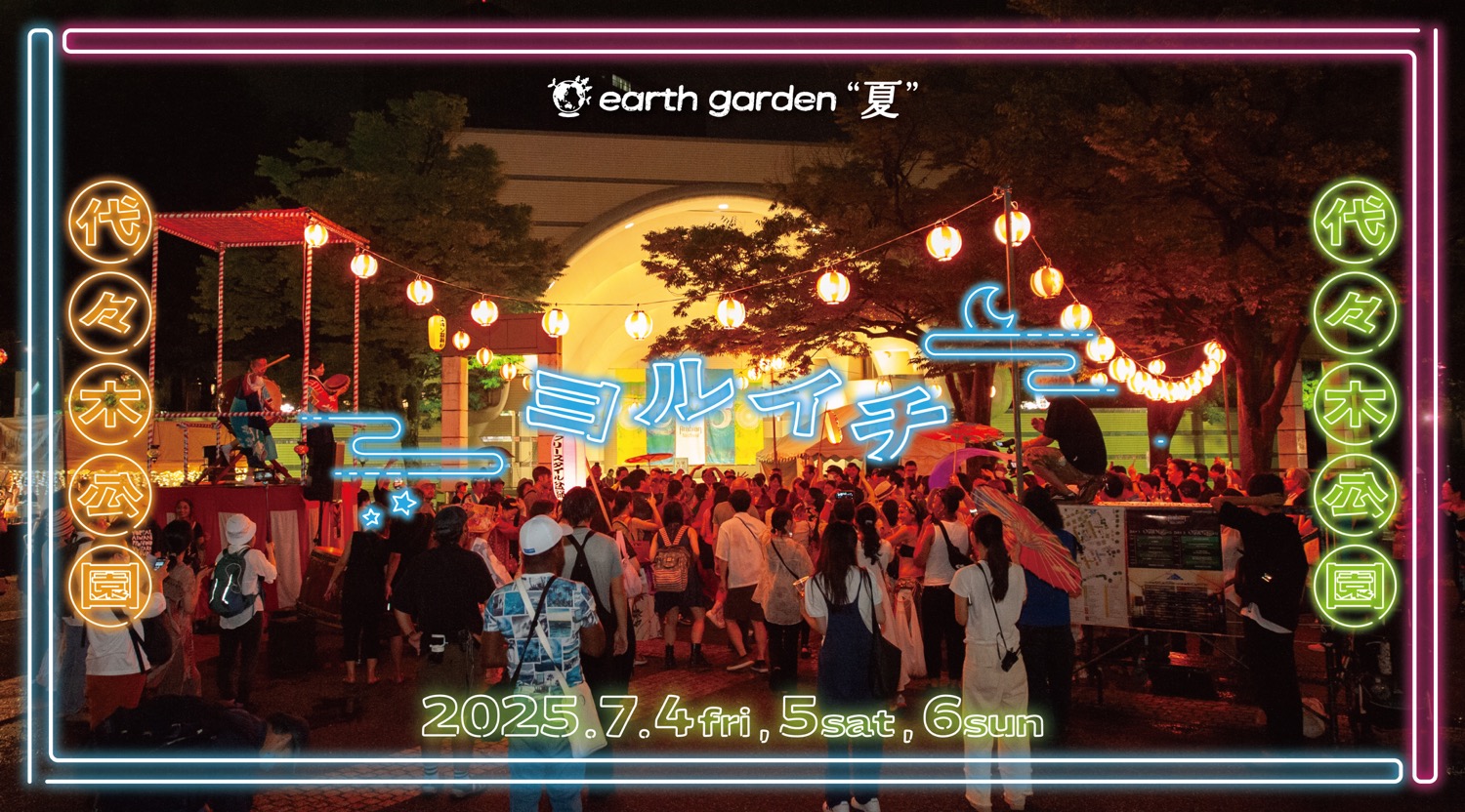 コミュニティフェスとして季節ごとに開催しているアースガーデン。夏の開催は、数年間の準備を経て”3日間”の”夜市(ヨルイチ)”へと大胆に生まれ変わります! 盆踊りに和太鼓など、夏らしいコンテンツを広げ、マタハリマーケット&星と太陽のマーケット(東京ナイトマーケット)と共に、夏の夜を彩ります!