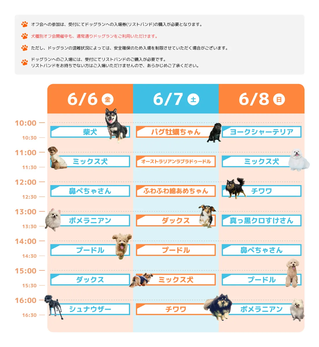 ※オフ会への参加は、受付にてドッグランへの入場券(リストバンド)の購入が必要となります。