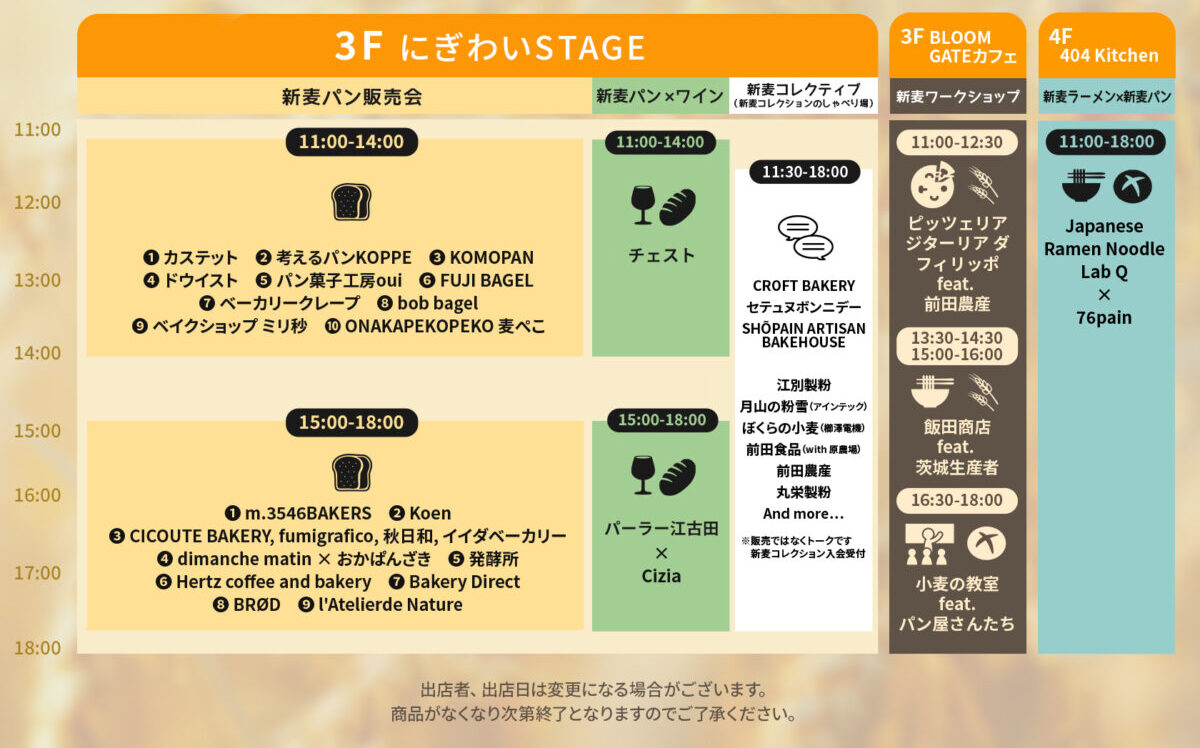 CROFT BAKERY(群馬)、SHŌPAIN ARTISAN BAKEHOUSE(栃木)、セテュヌボンニデー(東京)、江別製粉with前田農産(北海道)、月山の粉雪(アインテック・山形)、ぼくらの小麦(櫛澤電機製作所・神奈川)、前田食品with原農場(埼玉)、丸榮製粉(新潟) and more