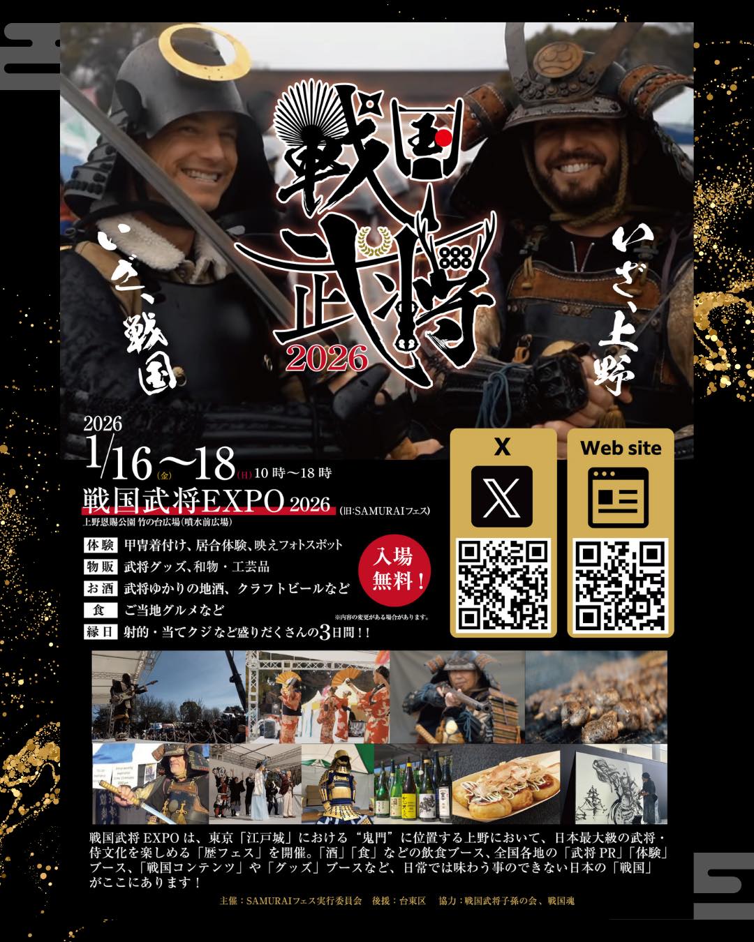 戦国武将EXPO2026(1月16日~18日 上野公園)