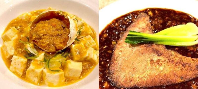 気仙沼産ヨシキリザメの肉厚な尾びれ(100g)に下味を丁寧につけ、職人技でステーキに。香ばしさとフカヒレの濃厚な旨み、カリっとした部分ともっちりとした食感に、特製麻婆ソースの深いコクが絡む贅沢な一品です。古樹軒ならではの組み合わせをお楽しみください。