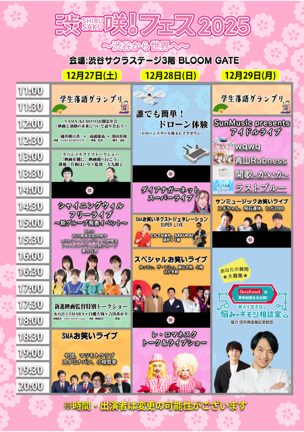 【無料ライブ】渋咲!フェス2025(12月27日~29日 渋谷サクラステージ)