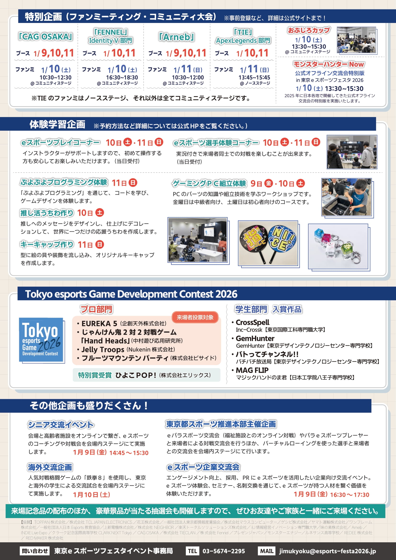 「東京eスポーツフェスタ」は、2020年1月に初めて開催し、今回で7回目となるイベントです。eスポーツの普及と関連産業振興を目的として、eスポーツの競技大会、関連産業展示会、体験・学習等の企画を実施します。