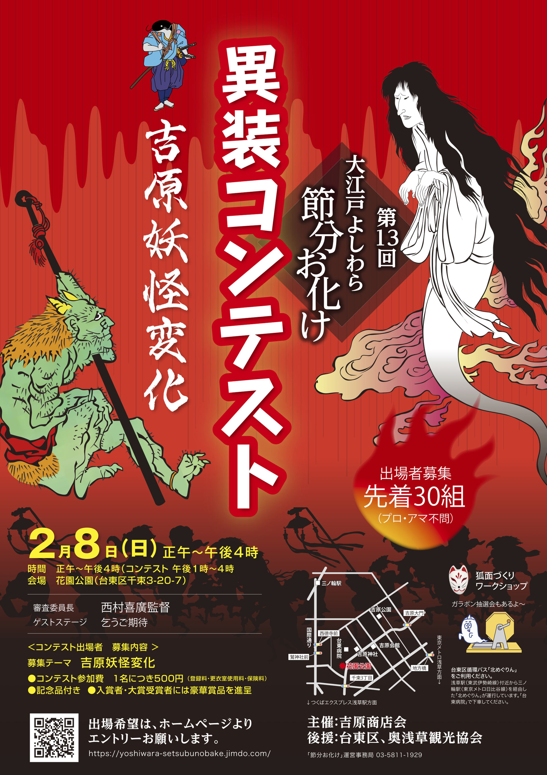 浅草 新吉原商店会のページです。令和8年2月8日に「第13回大江戸よしわら節分お化け異装コンテスト」が開催になります。絶賛出場者募集中!皆さんの参加お待ちしております!