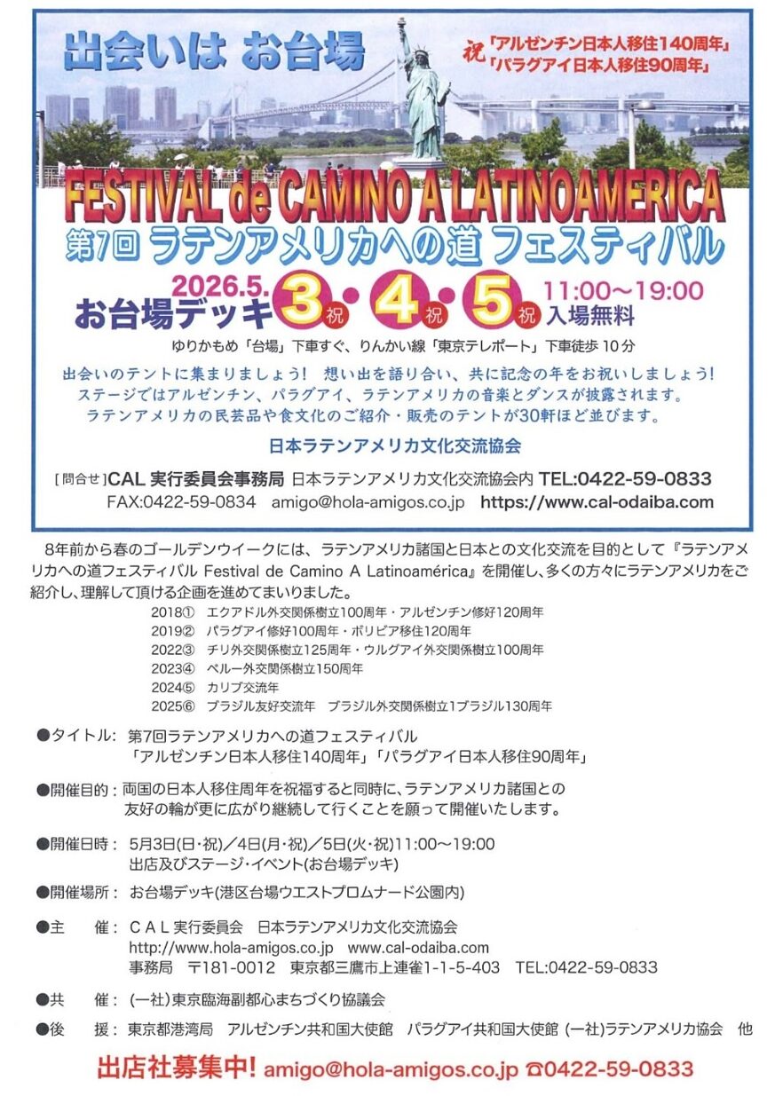 第7回ラテンアメリカへの道フェスティバル(2026年5月3日~5日 お台場)