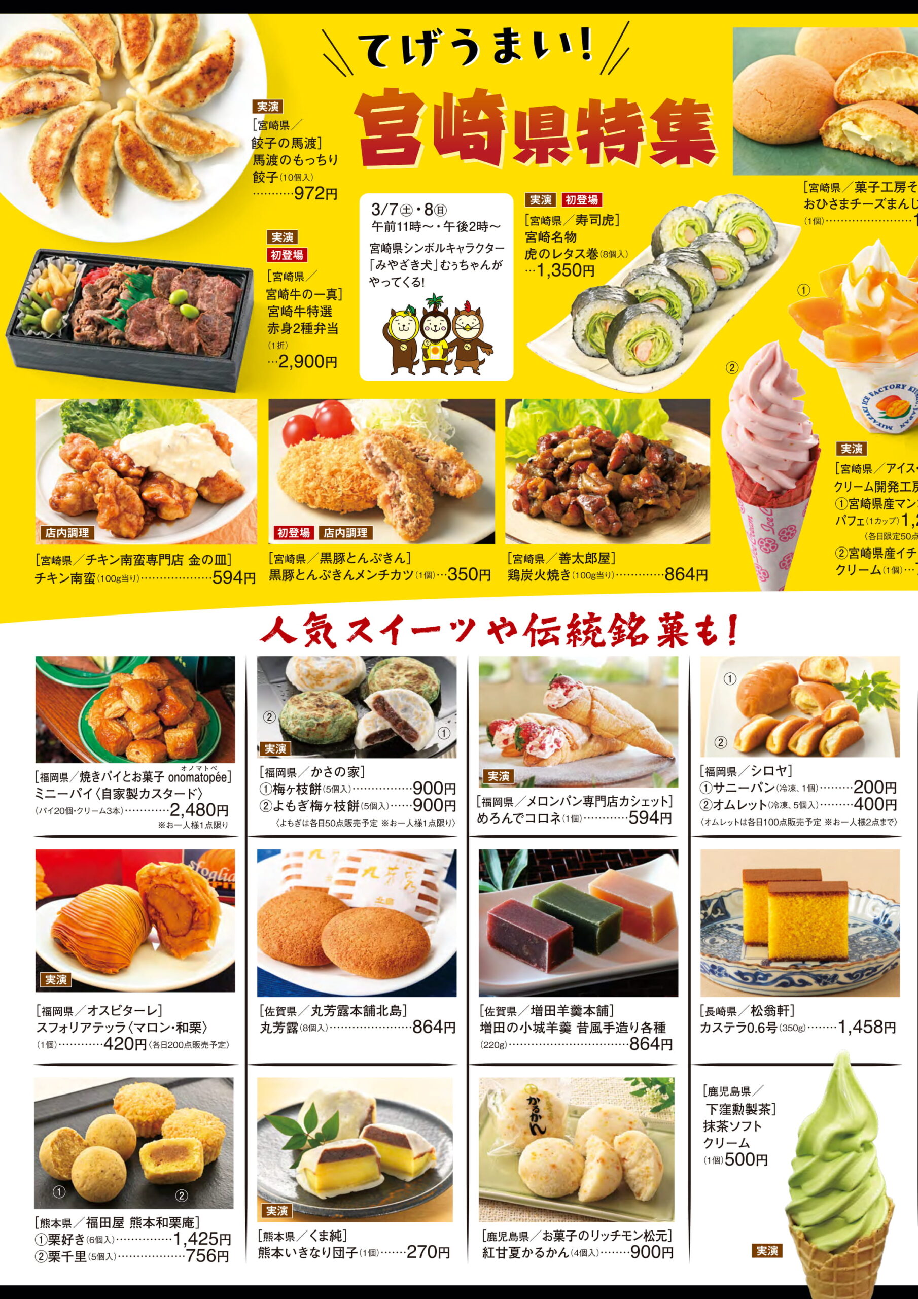 3/7(金)→13(木):博多ラーメン、佐賀牛に贅沢海鮮、宮崎県産マンゴーや苺たっぷりのフルーツスイーツ、梅ヶ枝餅など人気のおいしさが勢揃い!