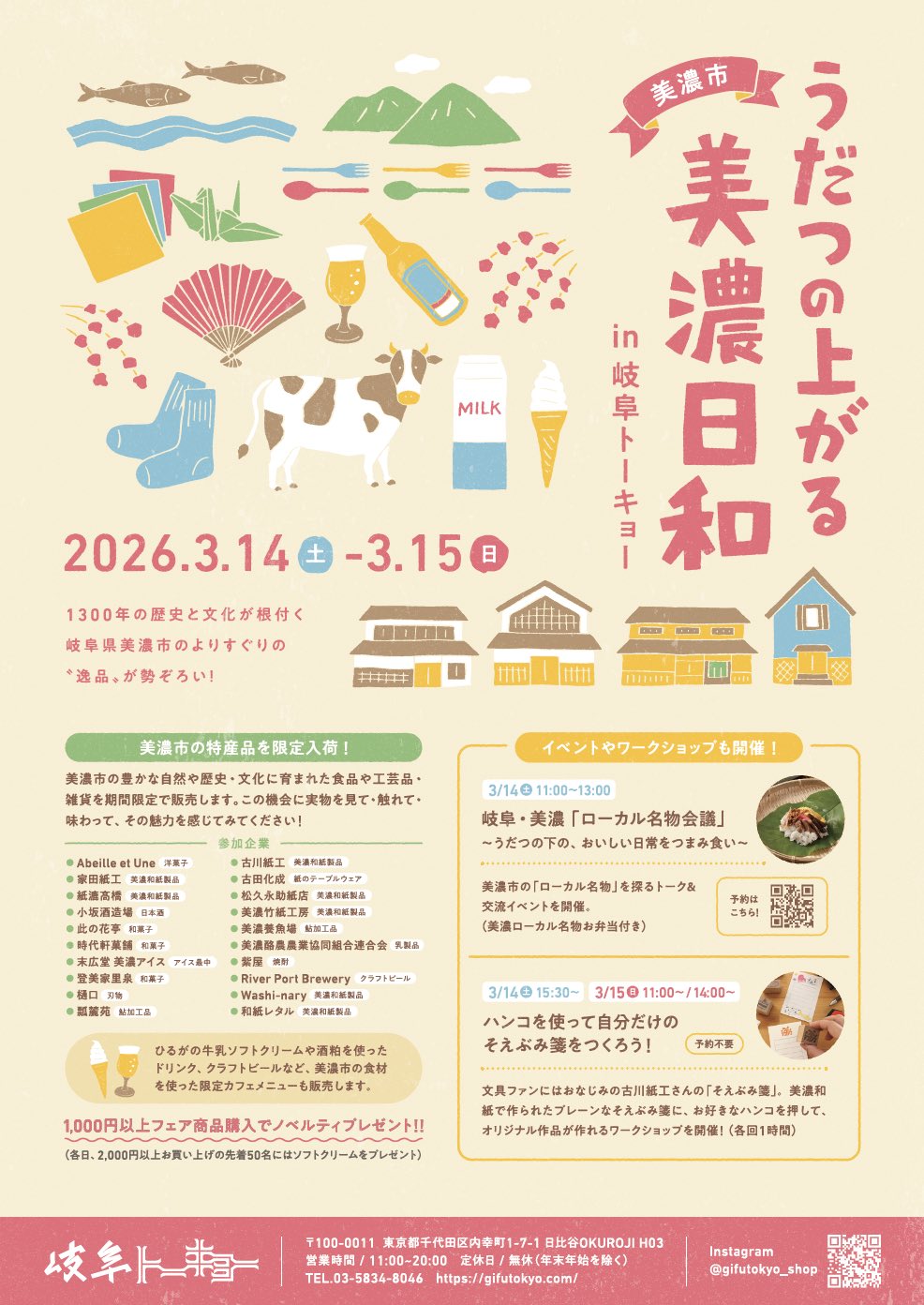 東京23区美濃市イチ押しの和菓子・洋菓子や美濃和紙製品などの販売やWS、トークイベントまで盛りだくさん!