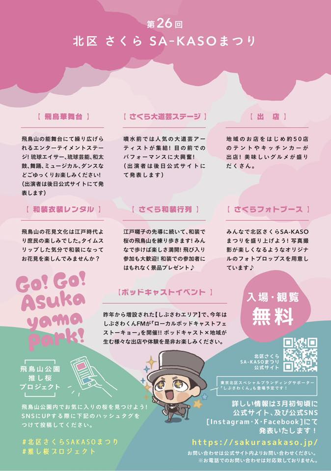 「北区さくらSA-KASOまつり」は江戸の庶民が楽しんだ花見を現代に復活させ、飲んで食べ、歌舞音曲を楽しめる、飛鳥山のお花見イベントです!