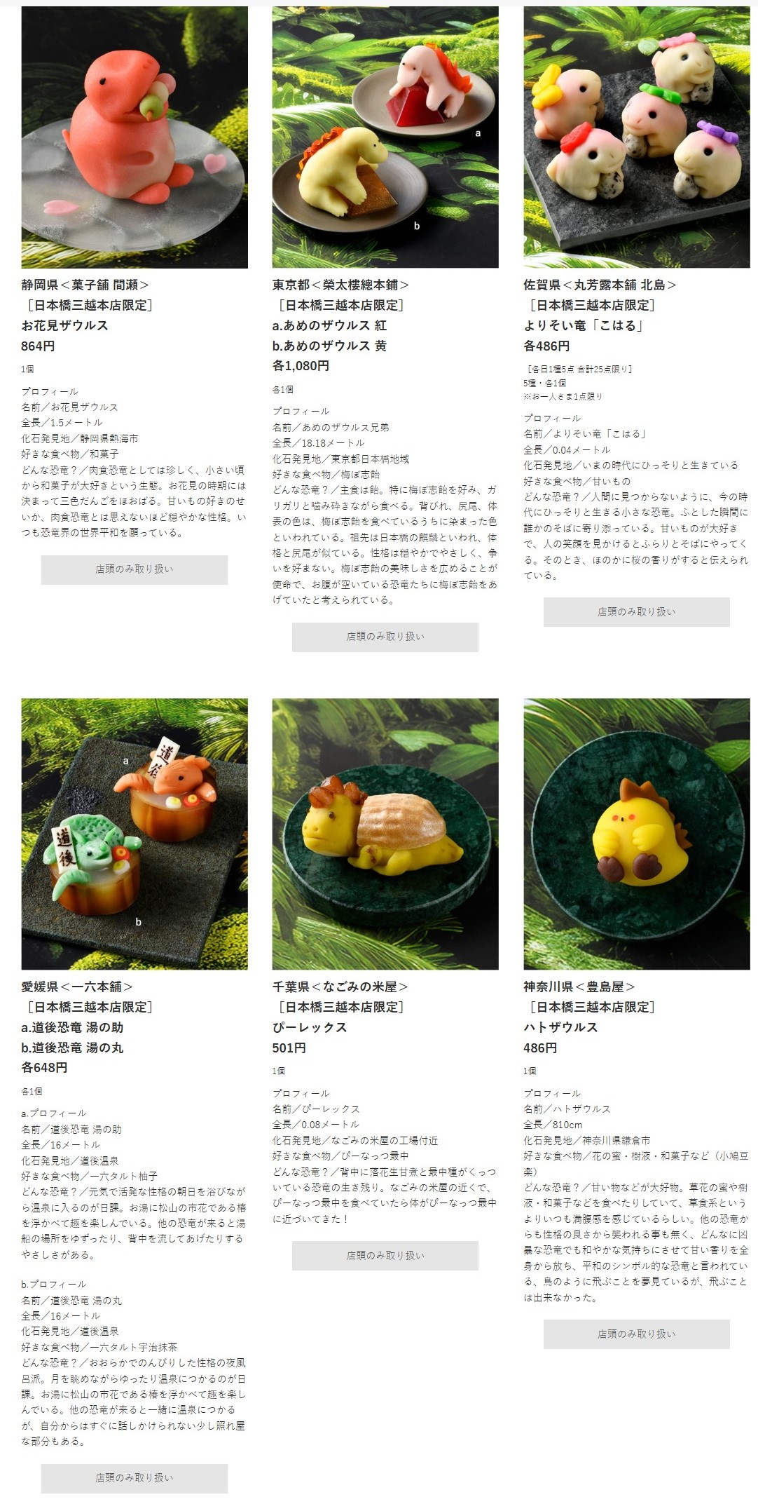 3⽉18日(水)〜3月23日(月)⽇本橋三越本店で開催!今年のテーマは「お菓子の恐竜展」。全国の老舗・名店の和菓子に新しいビジュアルとおいしさをプラスしました!福井県、福井県立恐竜博物館のご協力のもと楽しいイベントも開催! イベントの内容や...