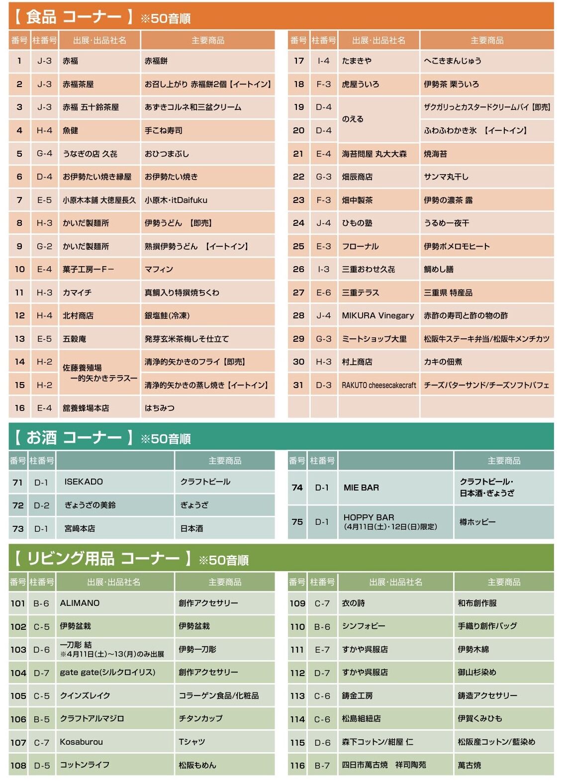 出店者(一部抜粋)