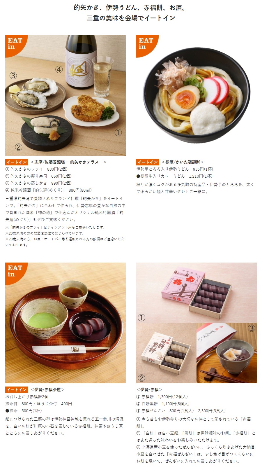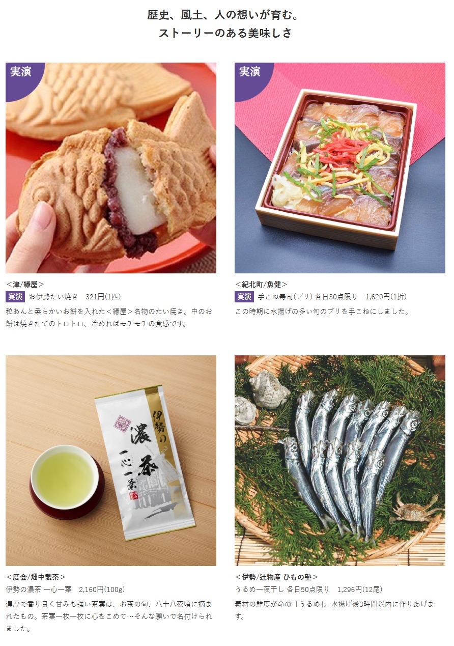 豊かな⾃然が、⼈々の祈りや想いが、⼟地の誇りが育んだ、⾷・技・美の宝庫「三重」。⾃慢のお⾁、⼭海の幸、名物料理、古今の⽢味、お酒、⼯芸品、染織物、縁起物まで。あれもこれも三重丸な「三重」の魅⼒をご堪能ください。