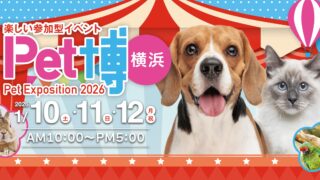 開催概要開催日時:2026年1月10日(土)~12日(月祝) 10:00~17:00開催場所:パシフィコ横浜 展示ホールA主催:Pet博実行委員会入場料:大人(中学生以上):1,500円(前売り 1,300円)子供(4歳~小学生):800円...
