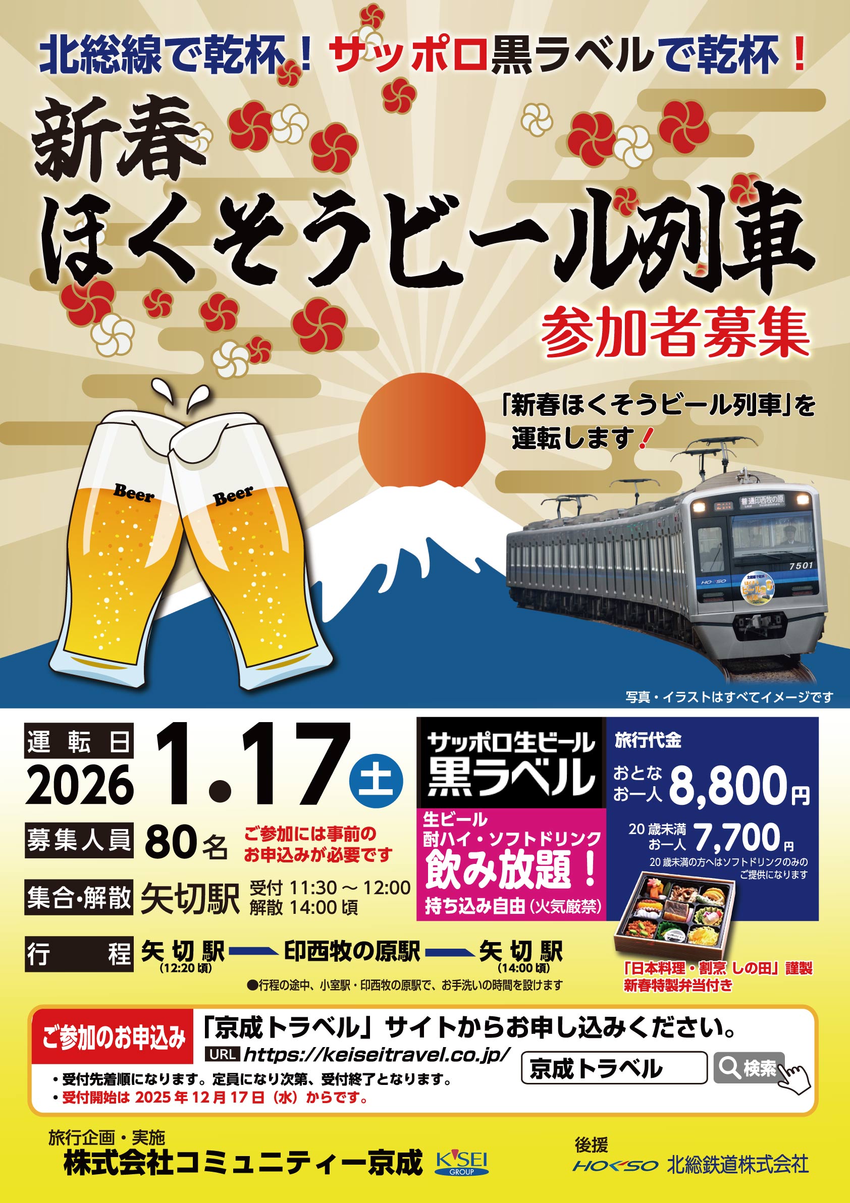 ご好評につき第6弾!通勤電車の車内がビアホールに変身♪!過去5回開催して大好評だった『ほくそうビール列車』を、新春2026年1月17日(土)に運転いたします。