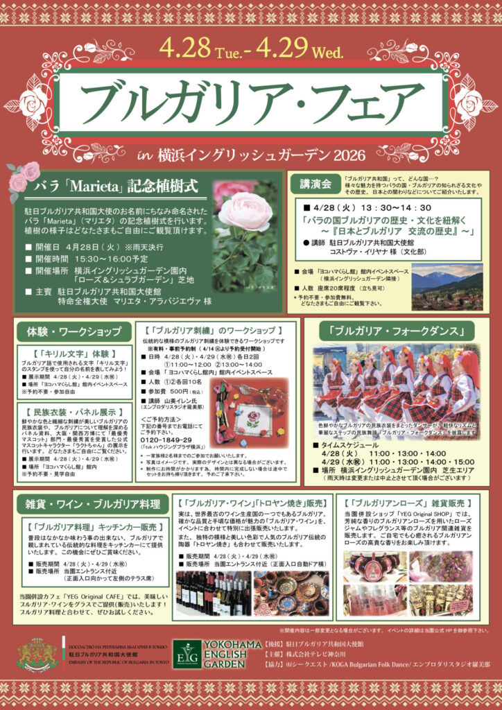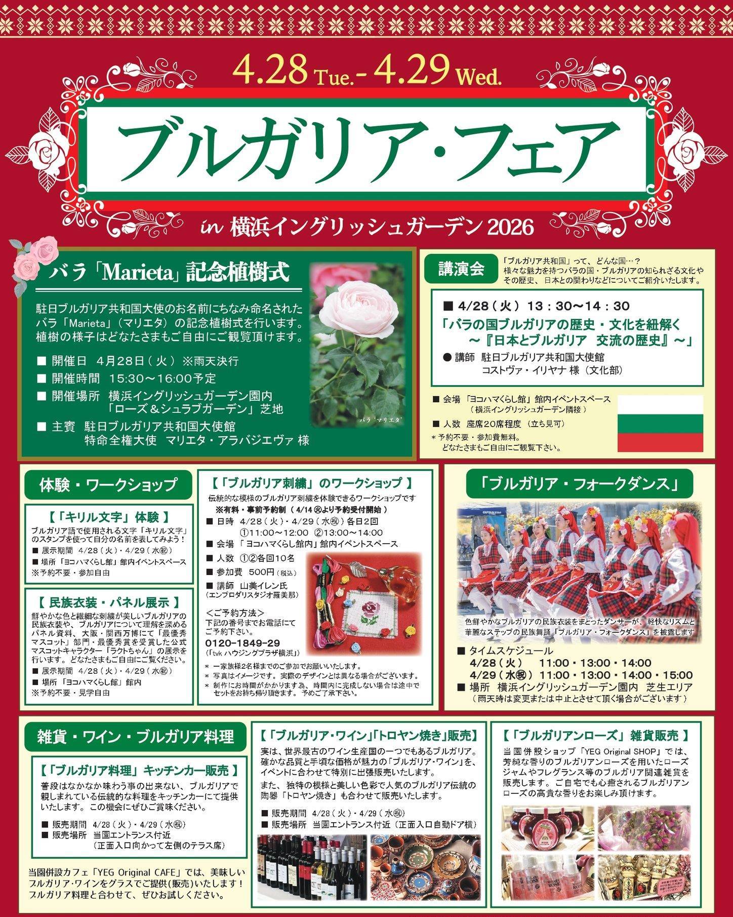 ブルガリア・フェア in 横浜イングリッシュガーデン 2026(4月28日~29日)