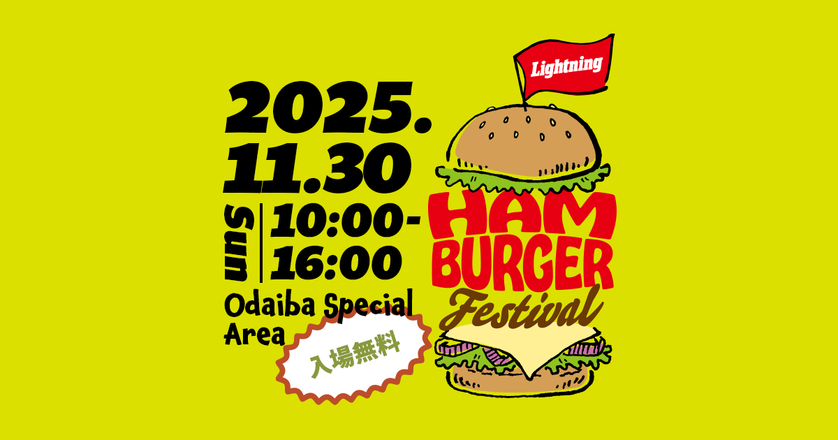 大好評のハンバーガーフェスが2025年11月30日にお台場で開催決定!注目のハンバーガーショップが一堂に集まるだけに、絶品バーガーを味わうこの機会を逃す手はない。お台場の心地のよい潮風に吹かれながら、思う存分食べて飲んでイベントを楽しもう!