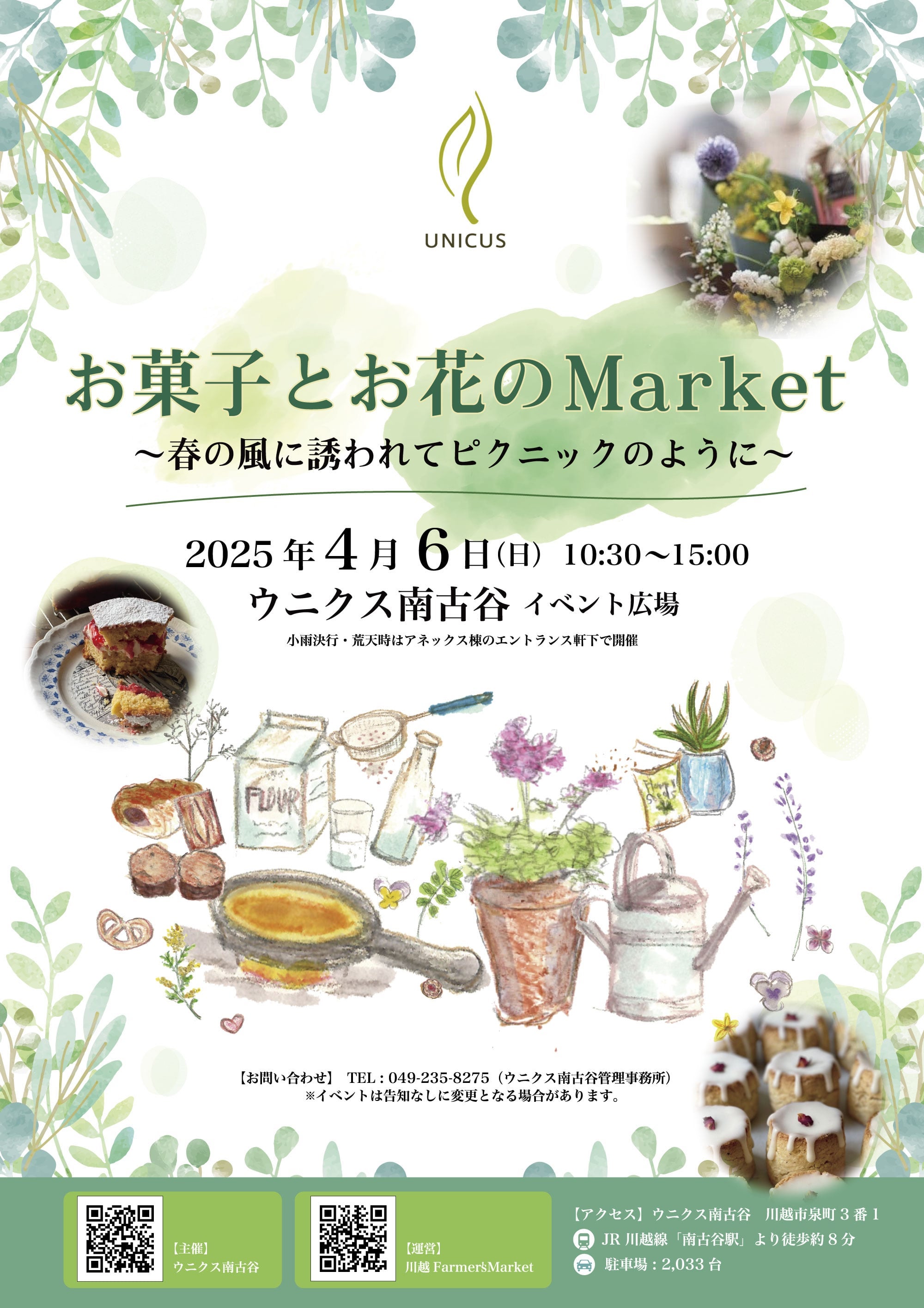 『4月6日(日)「お菓子とお花のMarket」開催 ウニクス南古谷 春と秋に開催』