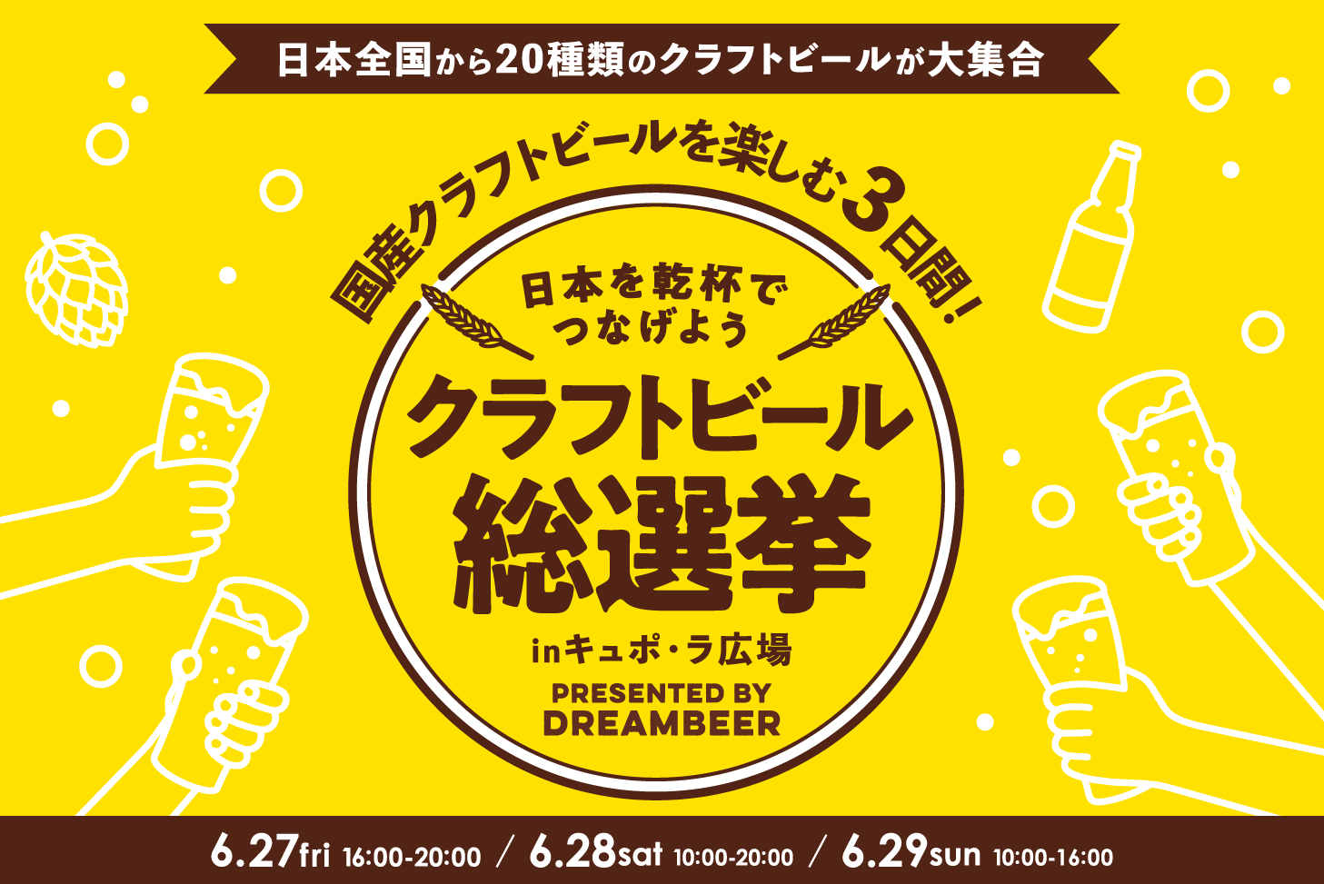 DREAMBEERで国産クラフトビールを楽しむ3日間「クラフトビール総選挙inキュポ・ラ広場」6月27日(金)~29日(日)開催! | DREAMBEER(ドリームビア)