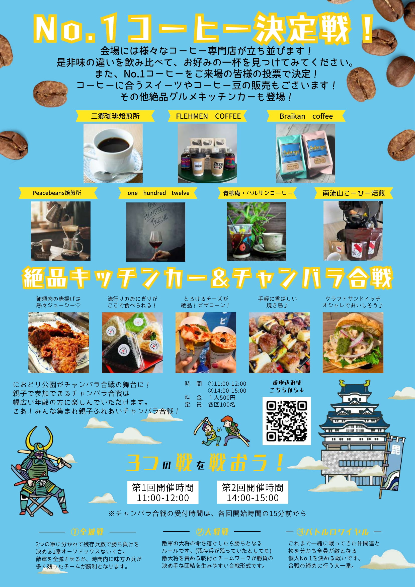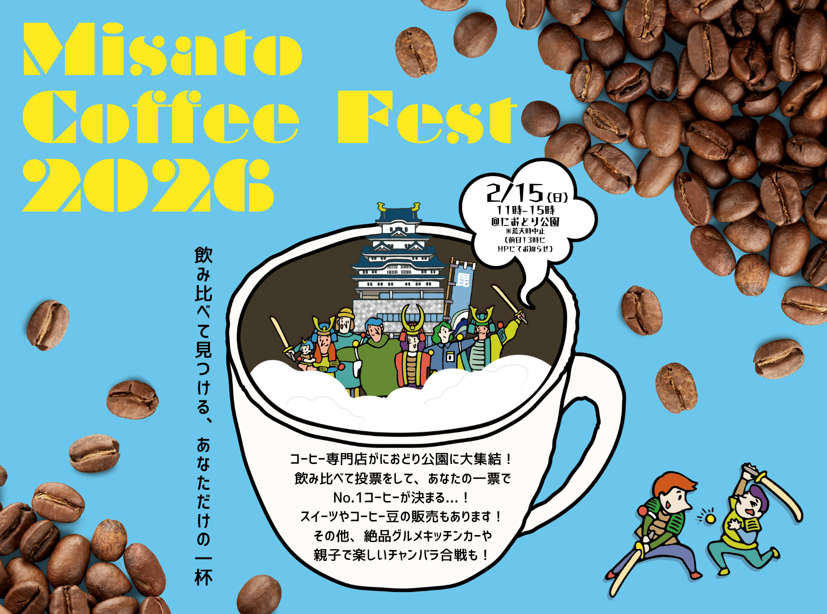 内容:コーヒー飲み比べ・販売、スイーツ・雑貨販売、キッチンカー、スポーツチャンバラ体験