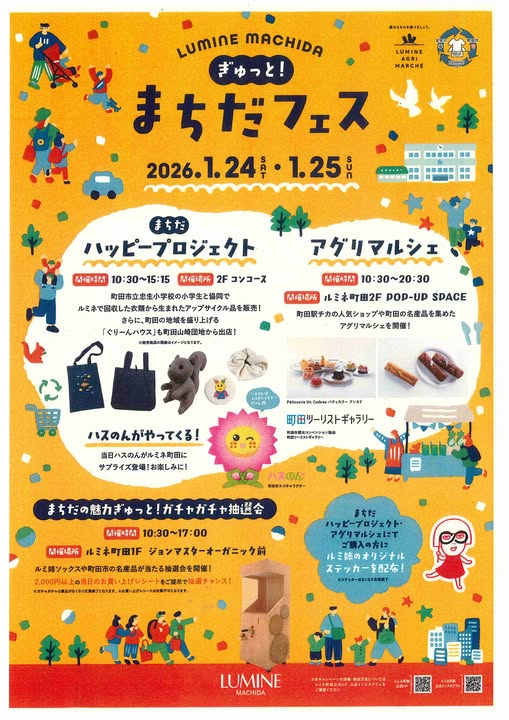 ルミネ町田では、1月24日(土)・25日(日)の2日間、地元小学生とのコラボイベントや、町田の人気店・名産品が一堂に会する「ぎゅっと!まちだフェス」を開催いたします。